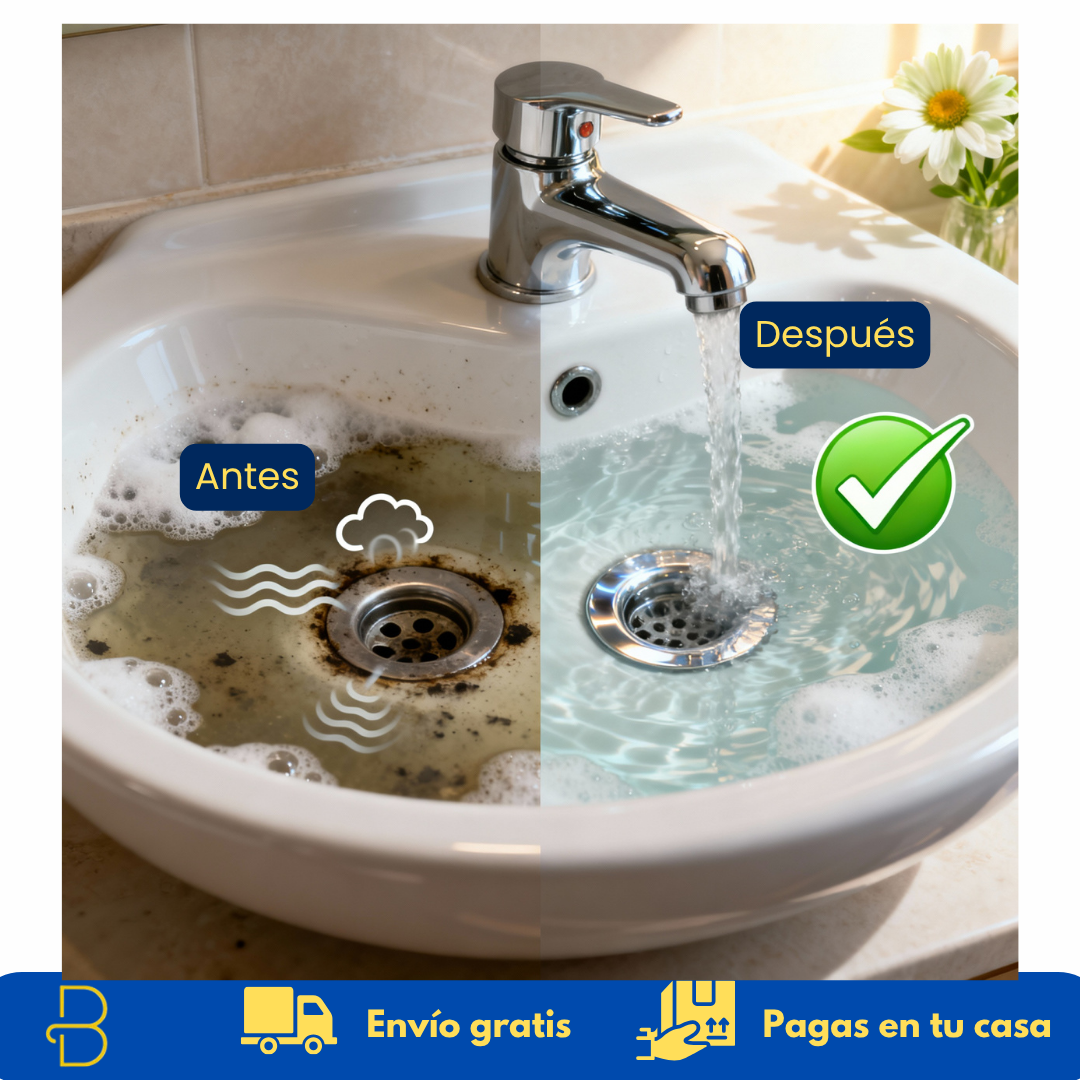 Modo de uso: Coloca una barrita en el desagüe, permite que actúe
