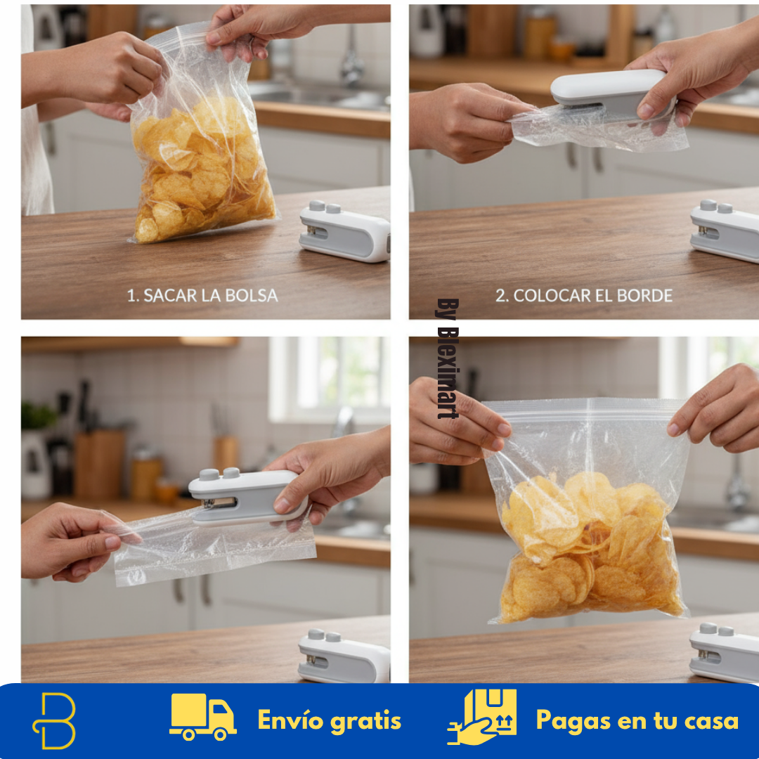 Sella bolsas de snacks, frutas, verduras, cereales y dulces en segundos